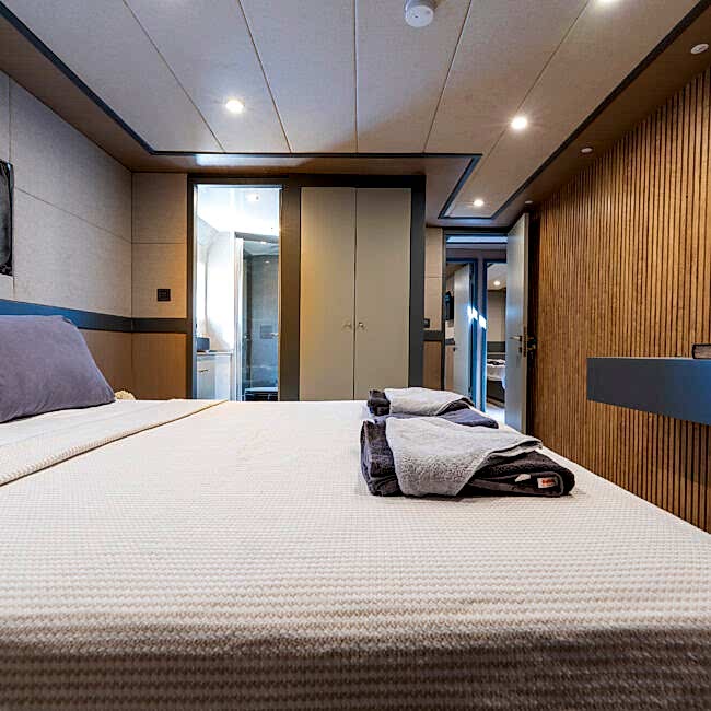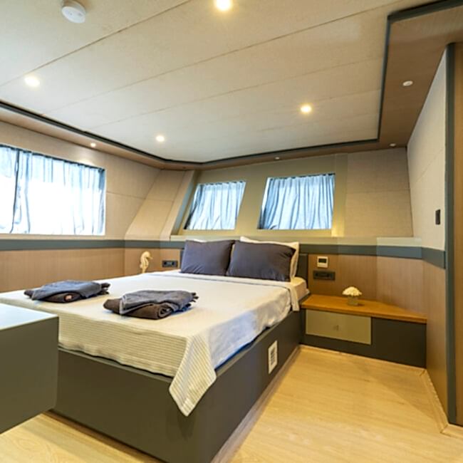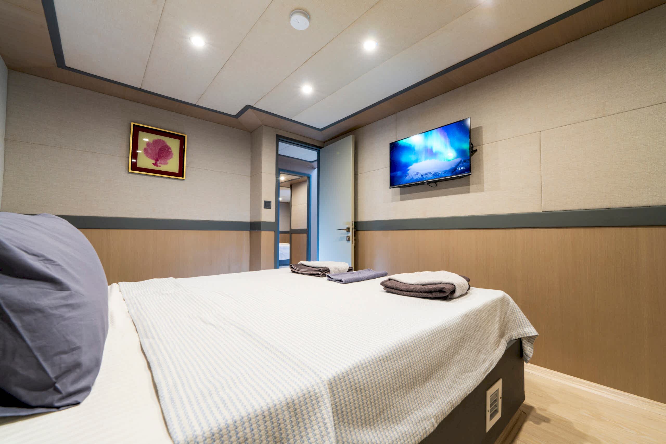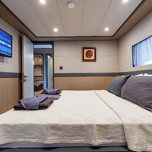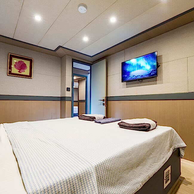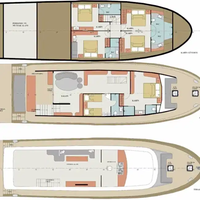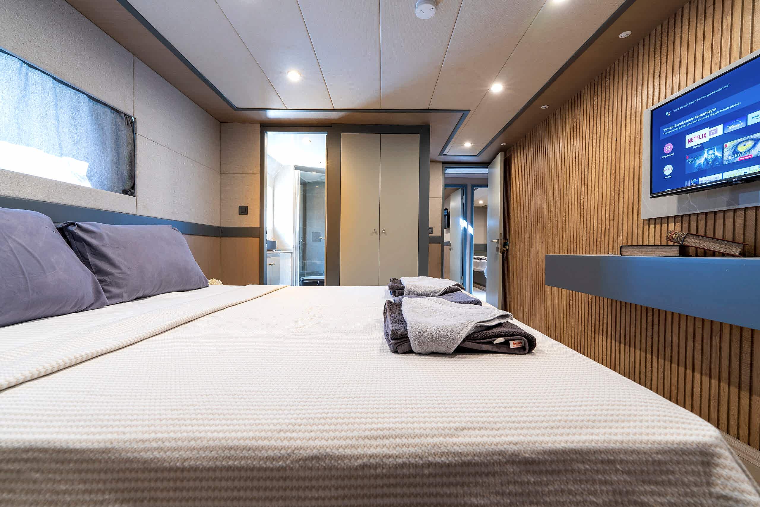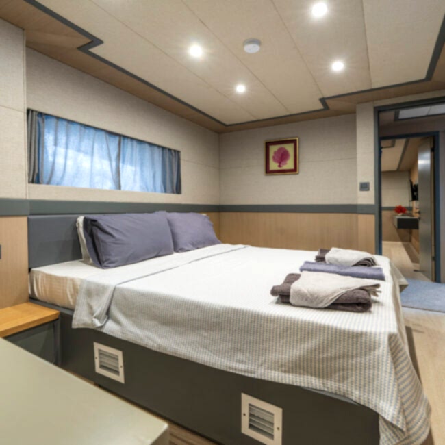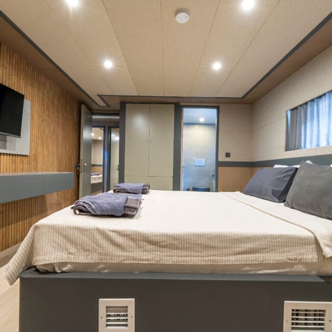 1 master , 4 double ve 1 twin kabini olmak üzere birbirinden şık ve rahat, kendine ait duş, WC ve kliması olan yatımız 6 kamaraya sahiptir.