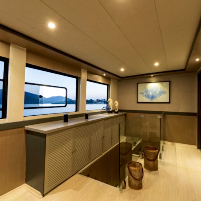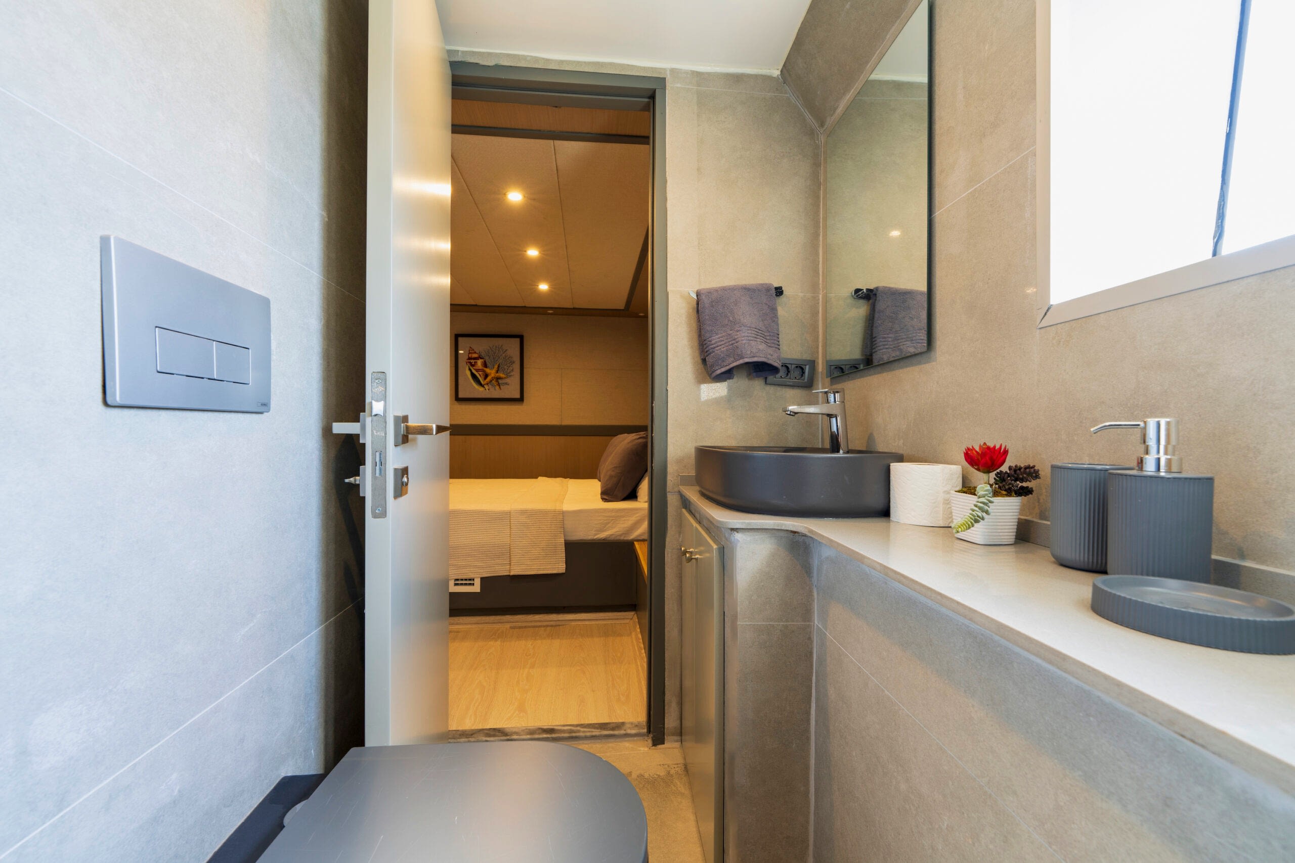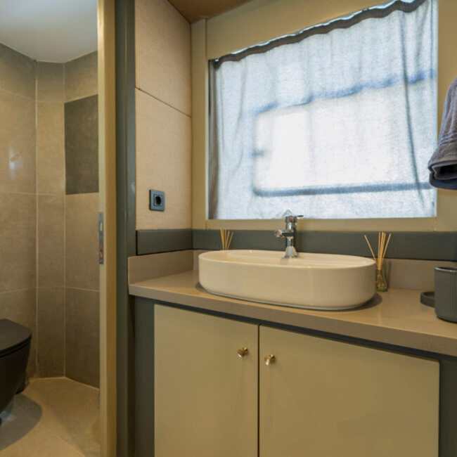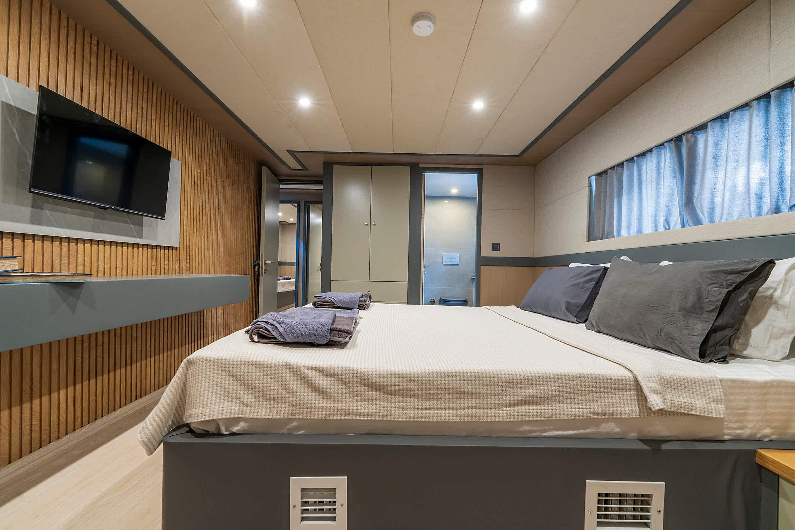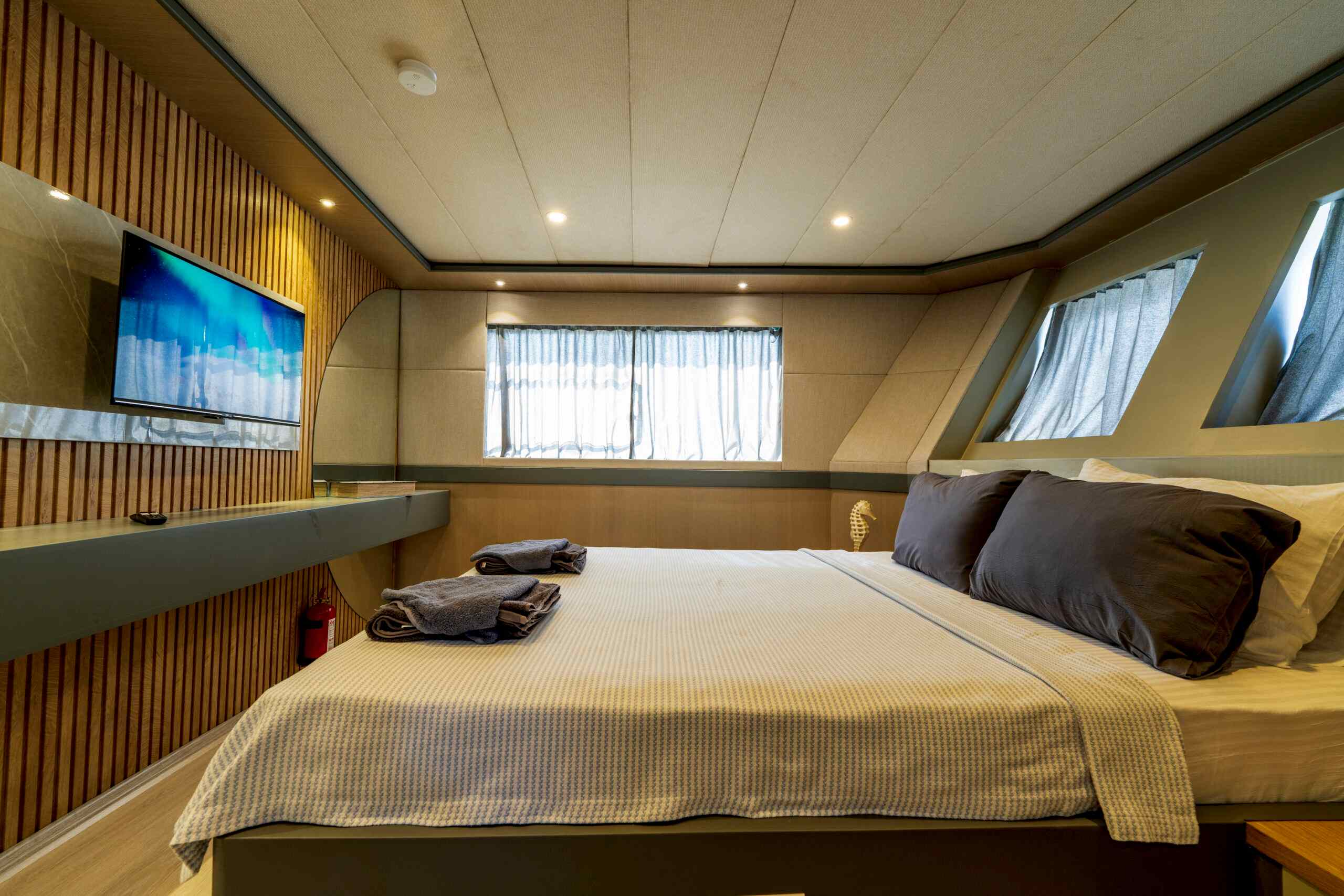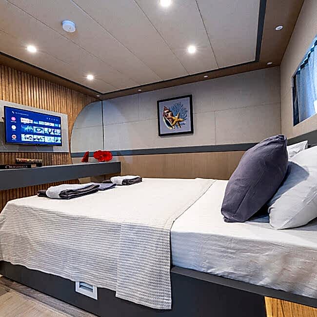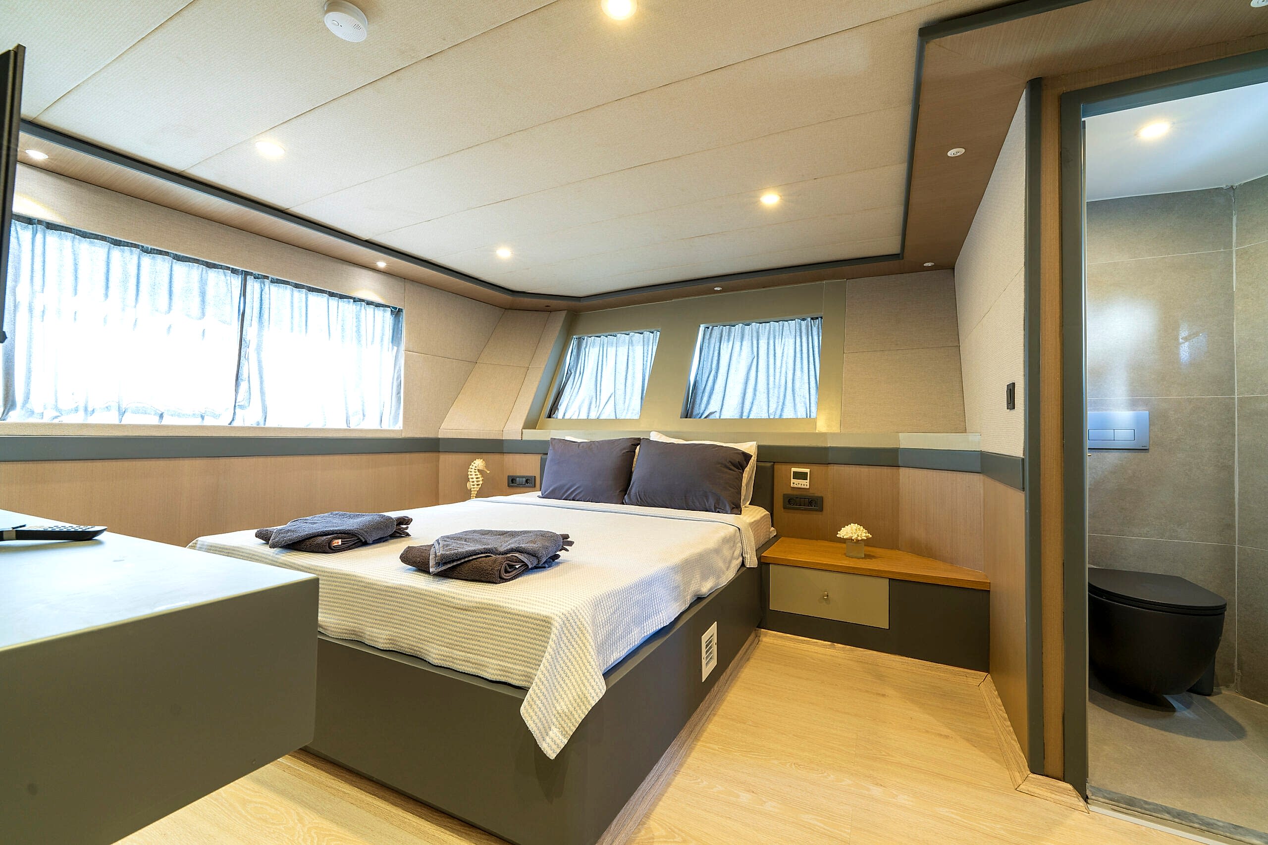 1 master , 4 double ve 1 twin kabini olmak üzere birbirinden şık ve rahat, kendine ait duş, WC ve kliması olan yatımız 6 kamaraya sahiptir.