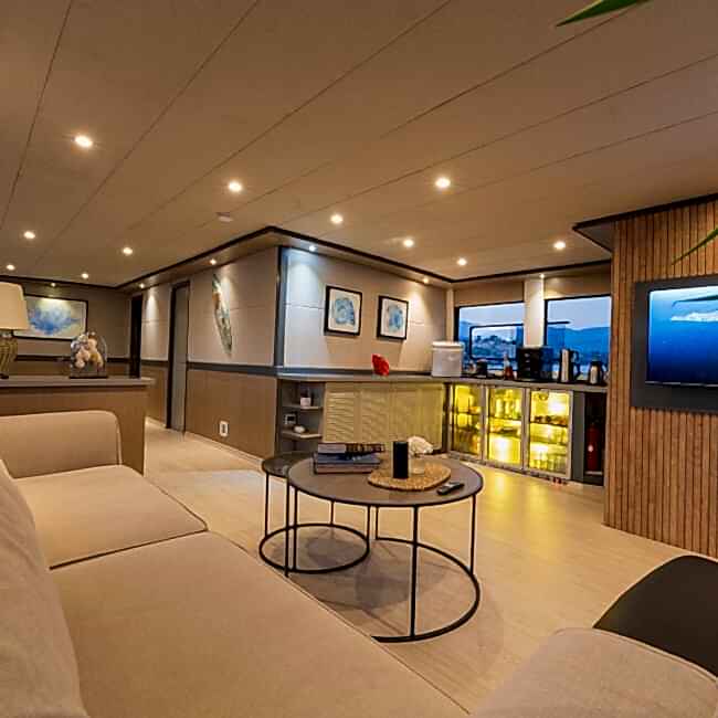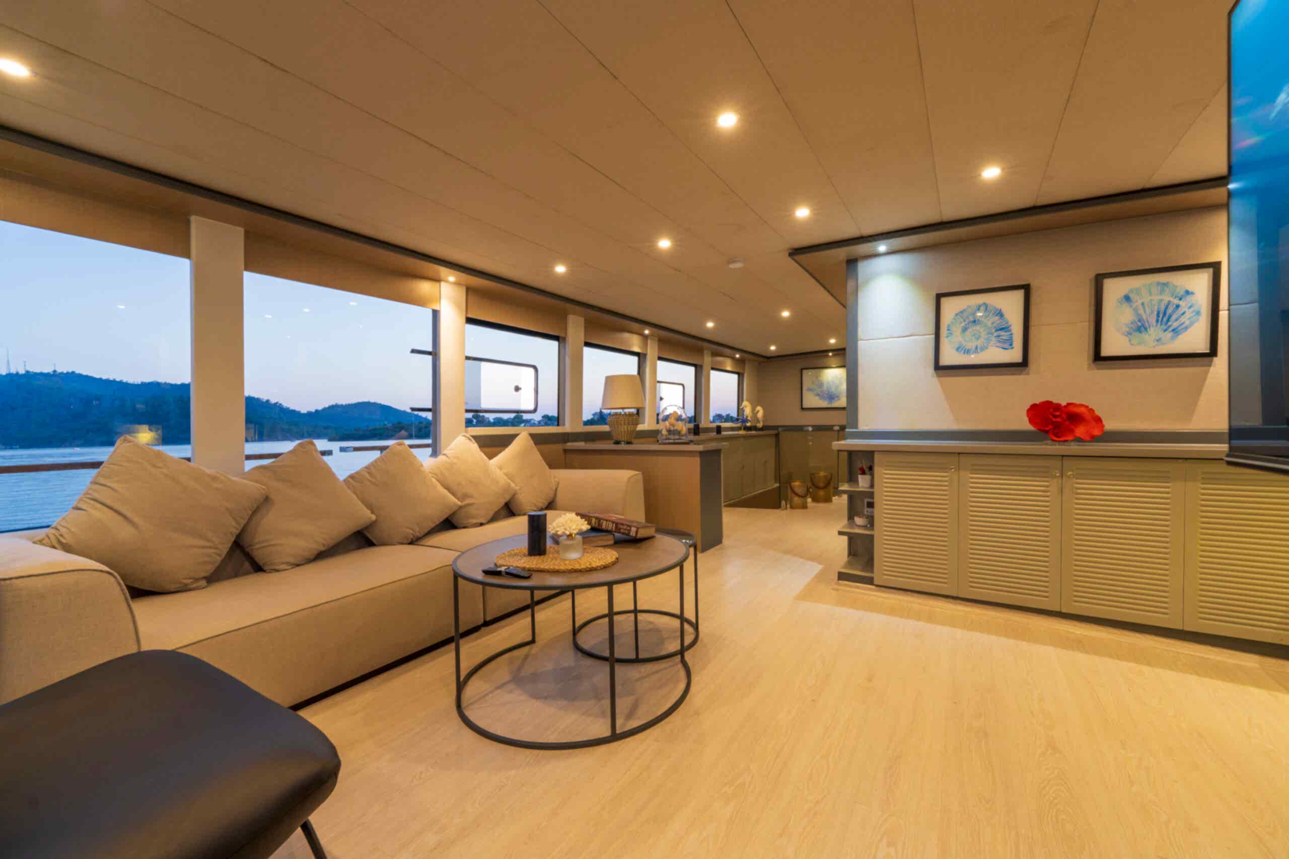 Mürettebat için ayrı yaşam alanları, tam teşekküllü mutfak, açık ve kapalı yemek yeme alanları , dinlenme alanları, ve Amerikan bar mevcuttur.