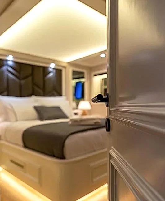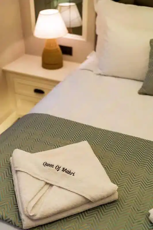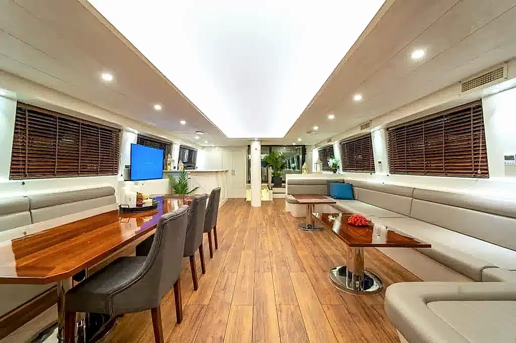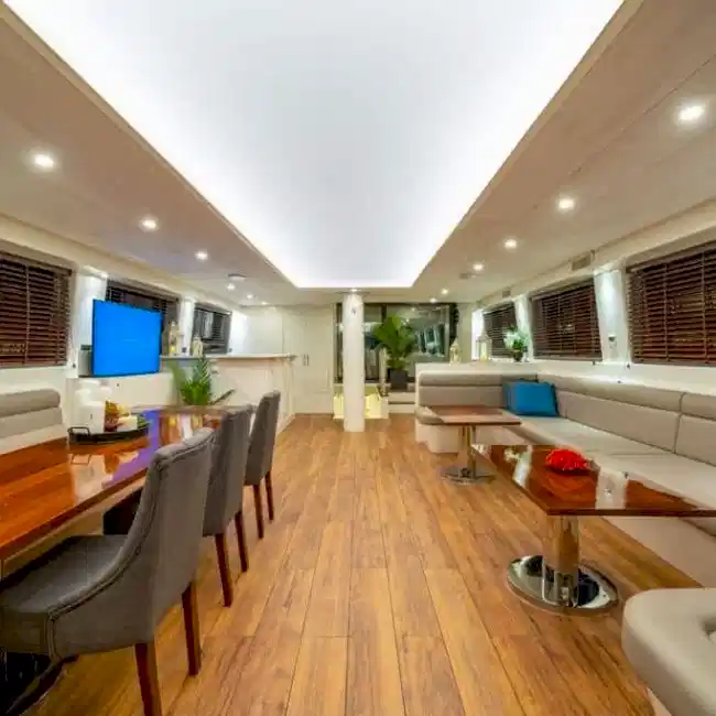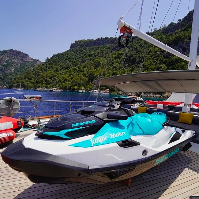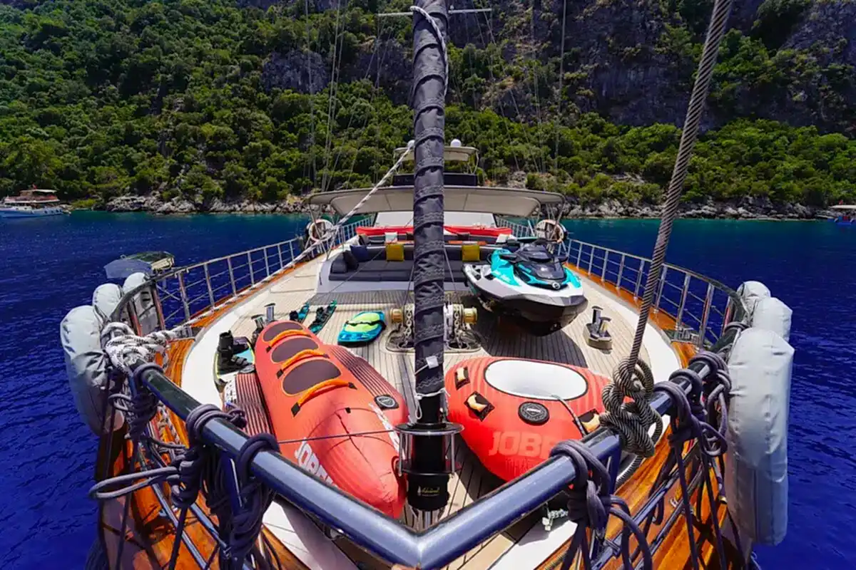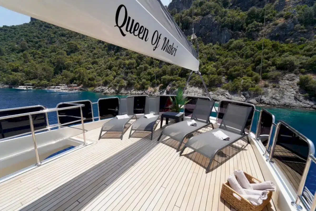 Queen Of Makri konforlu ve şık salonu, çok çeşitli su oyuncakları, jakuzisi ve jet skisiyle sizi muhteşem bir tatil imkanı sağlamaktadır.