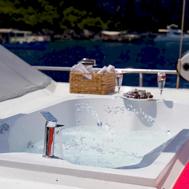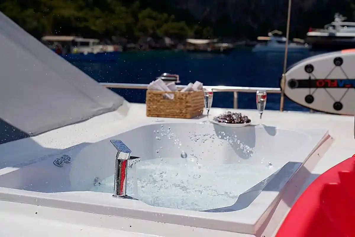 Ayrıca güvertede bulunan jakuzi ile kendinizi beş yıldızlı otelde hissedip tatilinize renk katabilirsiniz.