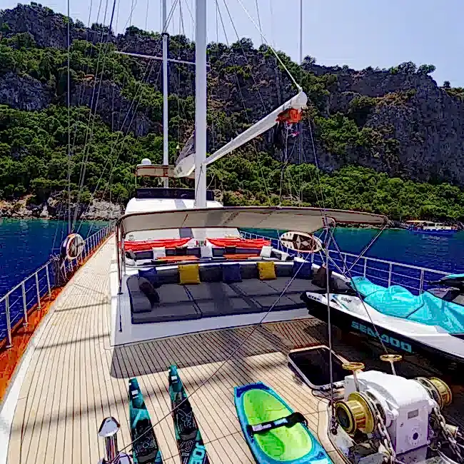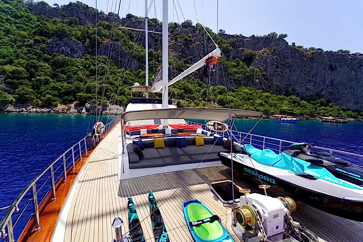 Ön ve arka güvertelerinin genişliği muazzam derecede rahat ve konforlu bir tatil imkanı sağlar.