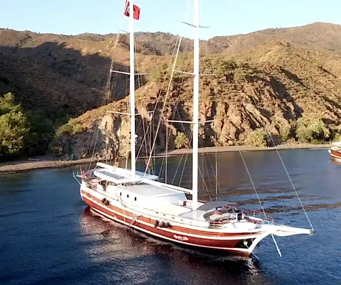 Bu yepyeni gulet 2 master kabin, 2 double yatak odası ve 2 triple kabinden oluşmaktadır ve 12 kişiye kadar konaklama kapasitesine sahiptir. Tüm kabinler ve yaşam alanları klimalıdır. Bu yepyeni tekne 33 metre uzunluğunda ve 8,5 metre genişliğindedir. Yat oldukça geniştir ve oldukça konforlu yaşam alanlarına sahiptir.