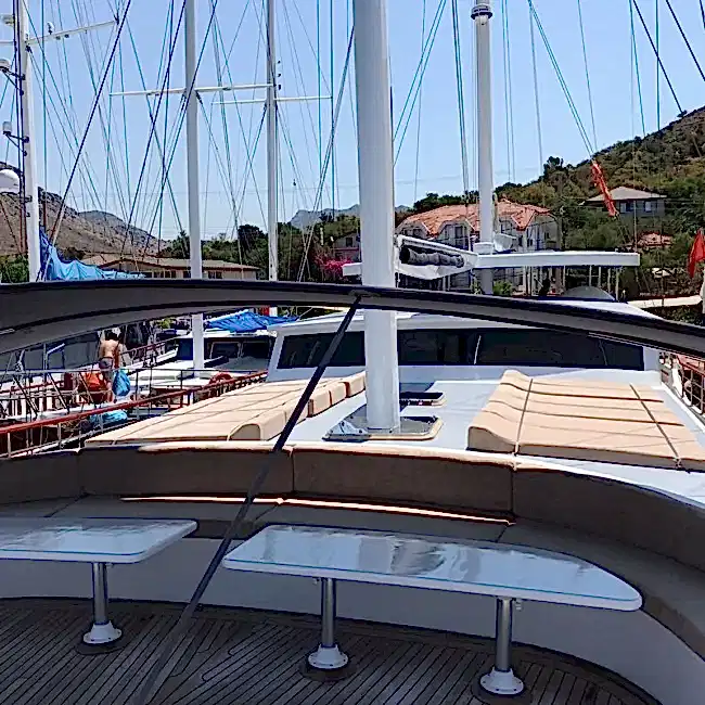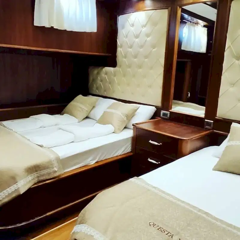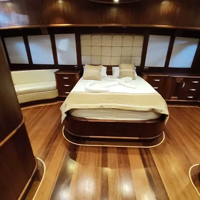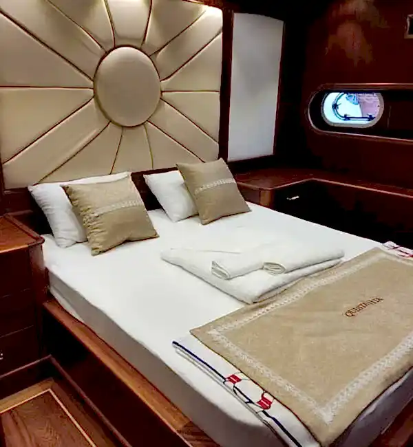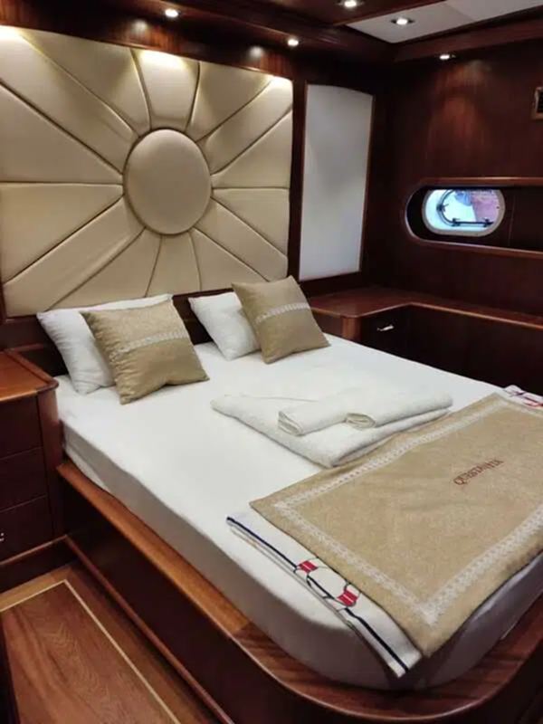 Kabinlerin içi oldukça konforlu ve şık döşenmiş olup, konfor için her detay düşünülmüştür. 5 kişilik mürettebat son derece profesyonel ve bu mavi yolculuk sırasında hiçbir eksiğiniz kalmayacak.