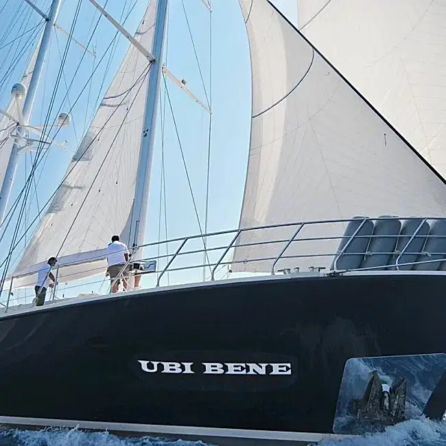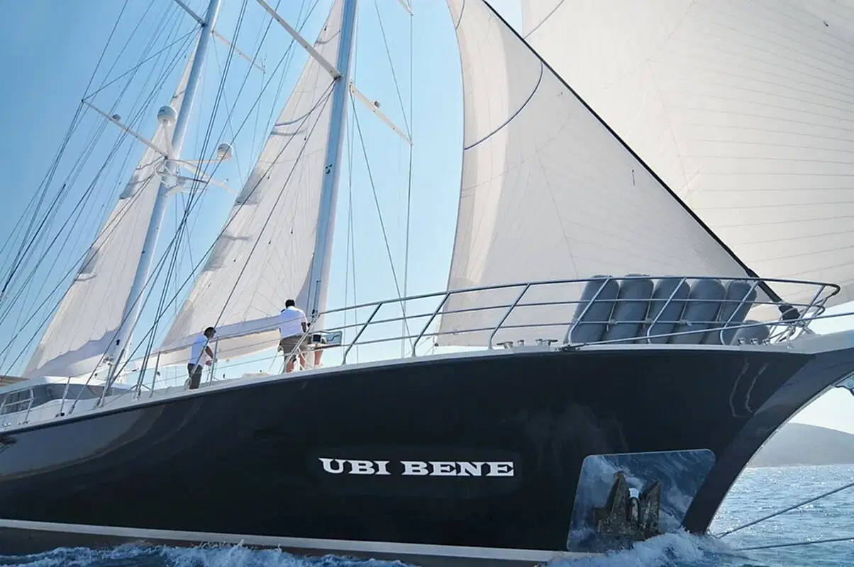 Gulet Ubi Bene tasarım harikası olan Ubi gulet size eşsiz bir mavi yolculuk sunmaktadır.Gulet Ubi Bene yelkenli 44 metre uzunluğunda, 8.80m genişliğinde, şık ve çekici bir yelkenli yat, şık ve modern benzersiz bir yelkenlidir.
